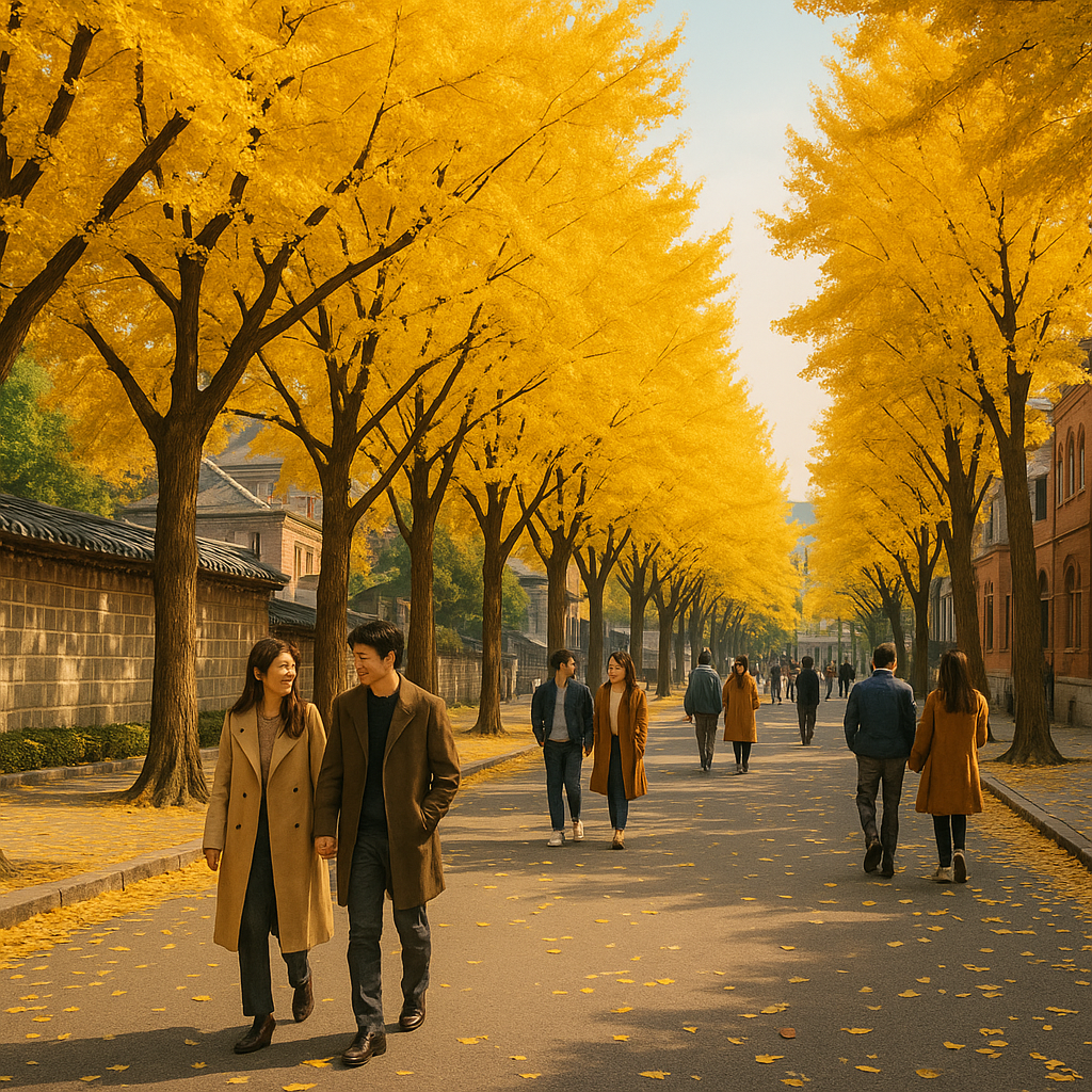 💡 포인트: 오전 시간대에는 햇살이 은행잎 사이로 부드럽게 비쳐 황금빛 사진을 찍기 좋습니다.