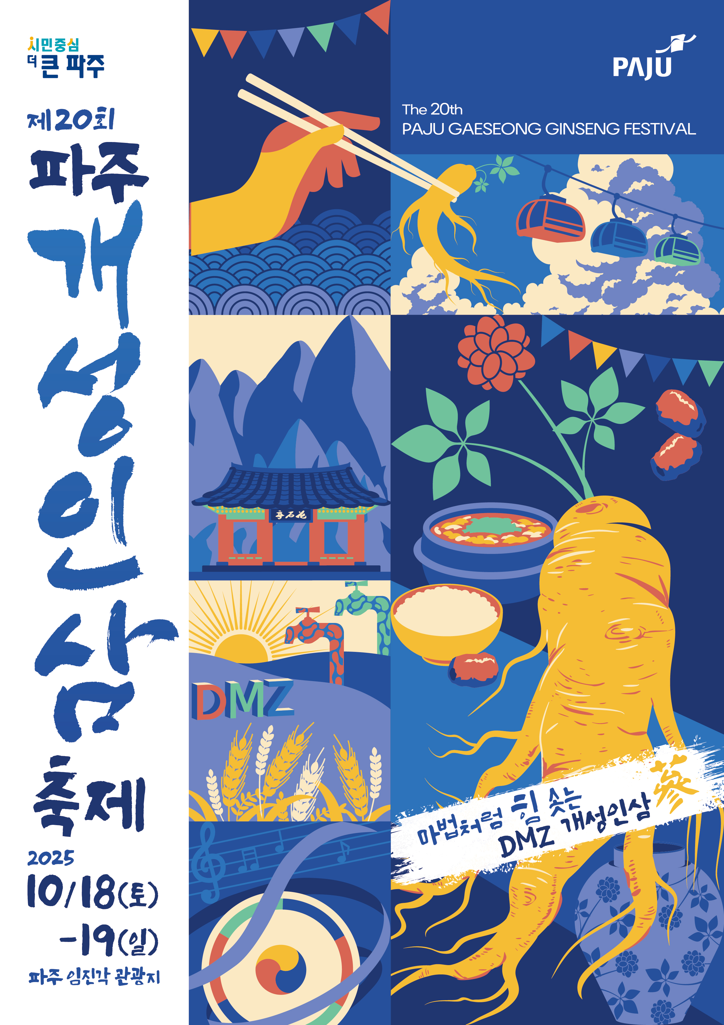 | 파주 개성인삼축제 | ~ 10/19 | 경기 파주 / 개성 인삼 관련 지역 | 인삼 전시, 인삼 제품 판매, 인삼 효능 강연 |